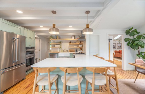 This thoughtfully renovated 4-bedroom, 4-bathroom home with an airy loft sleeps up to 14 guests in beds (up to 18 with couches and air mattresses). Perfect for group getaways, retreats, or multi-family trips, the home has a cabin-like charm with elegant finishes, natural materials, and wide-open communal spaces built for memory-making.