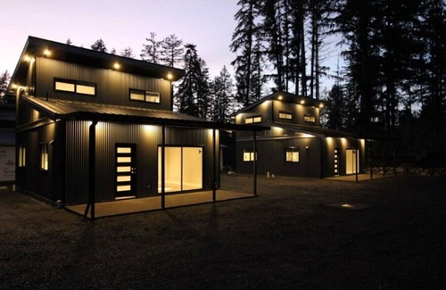Kick back and relax in this calm, stylish space. with 1 king bedroom, 1 queen bedroom, and a queen pullout bed. full kitchen with granite counter tops, and acid stained concrete floors. HRV system 2 headed heat pump system, and a HWT on demand unit. full walk-in tile shower with a bench seat and rain fall shower head. 4 cabin development on a 2.72 acre estate. A modern and luxurious vacation home.