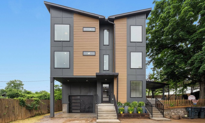 Book now to enjoy this new stylish modern contemporary centrally-located home in West Nashville! Enjoy multi-level living, with a private sauna and a third-floor deck. There are two separate private entrances with a fenced & gated shared courtyard. Minutes from most popular attractions (Parthenon, Country Music Hall of Fame & Broadway). Surrounded by many dining options, trendy boutiques, and scenic parks. This home is perfect for corporate temporary housing or an extended Nashville adventure!