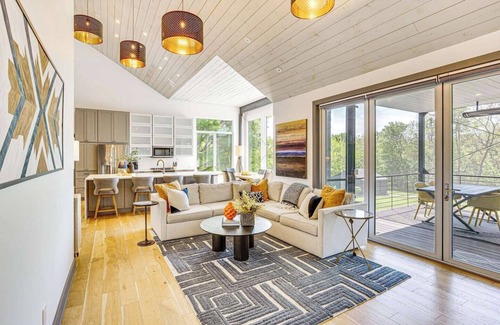 The design and function in this home has been a labor of love. Inspired by our family we've created a space that accommodates many and welcomes larger families or groups of friends that are seeking an all inclusive getaway. Peaceful being on an acre surrounded by nature where the nighttime stars light up the sky. A shipping container pool keeps you cool on hot summer nights, activities for young and old to include grilling, ping pong, shuffleboard, basketball goal and a trampoline.