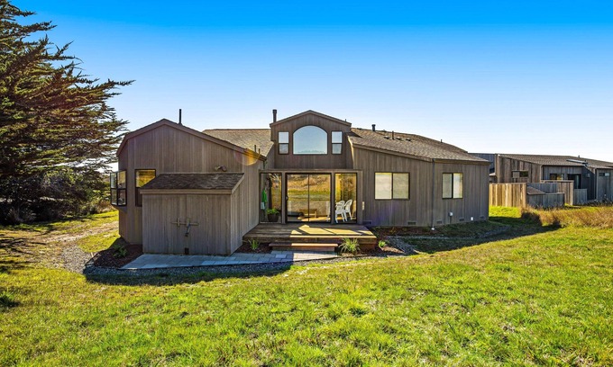 Offering a beautiful west meadow location that faces the Pacific Ocean and backs up to the golf course, this Sea Ranch home brings streamlined, contemporary style to your next escape on the Northern California Coast. This home will welcome you from your daily walks on the Bluff Trail and rounds of oceanfront golf with two gas-powered fireplaces and a soothing private hot tub outside on the deck.