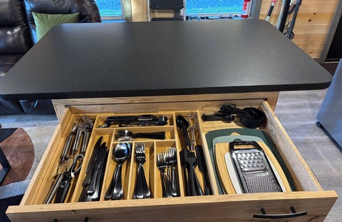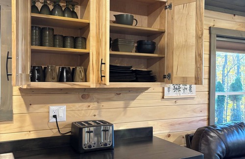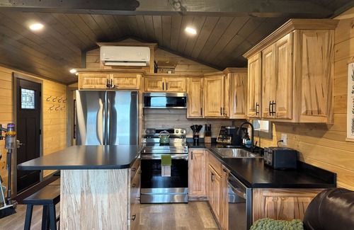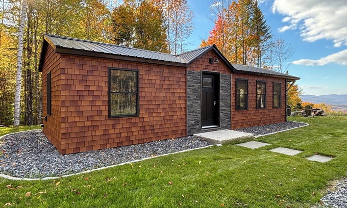 Come enjoy our Mini Kirby VT Hideaway. This 1 bedroom home makes a great place to enjoy VT’s mountainous views. Located near the Burke Mountain Ski Resort, the Kingdom Bike Trails, & local restaurants. You may recognize the name “Kirby Hideaway.” That’s because it’s right above our other rental home! You can rent the mini version by itself or both for large groups. They’re separated by trees for privacy but close enough to be combined. The mini Kirby hideaway is newly designed and modern!