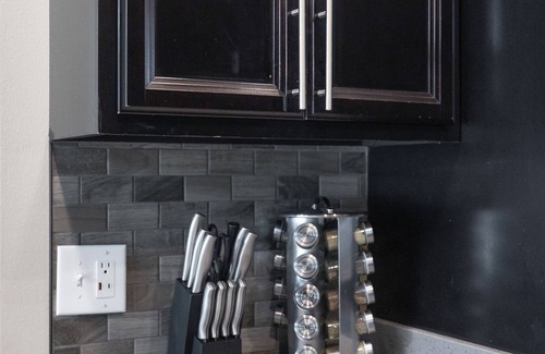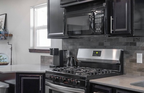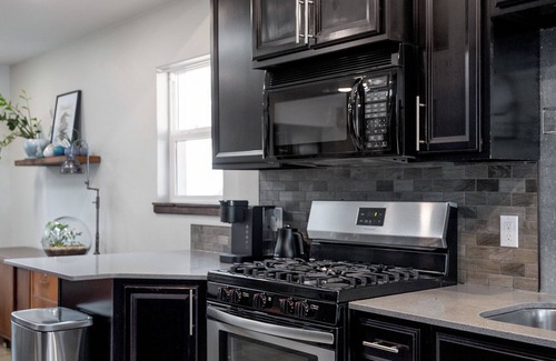 The modern, fully-equipped kitchen is ready for your culinary adventures, stocked with everything you need to whip up a delicious meal.