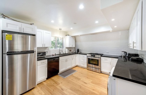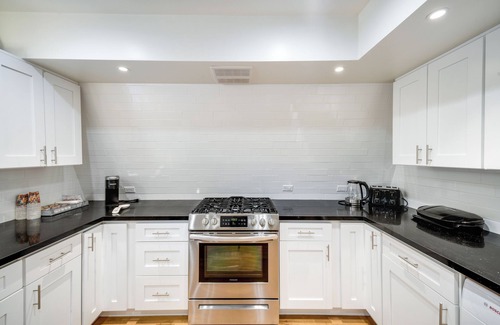 KITCHEN: Stove/oven, refrigerator, microwave, dishwasher, dishware/flatware, cooking basics, coffee maker, electric kettle, toaster