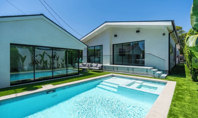 Modern Poolside Paradise in Sherman Oaks is located in Valley Village. Modern Poolside Paradise in Sherman Oaks provides accommodation, featuring Bedding/Linens, Wellness Facilities, Child Friendly, among other amenities. This Villa features Bedding/Linens, Wellness Facilities, Child Friendly, to make your stay a comfortable one.