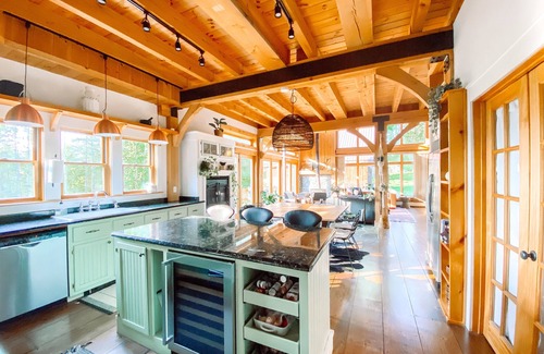 Modern Post & Beam near Stowe Village with Mountain Views and Private Waterfall | House in Morristown
