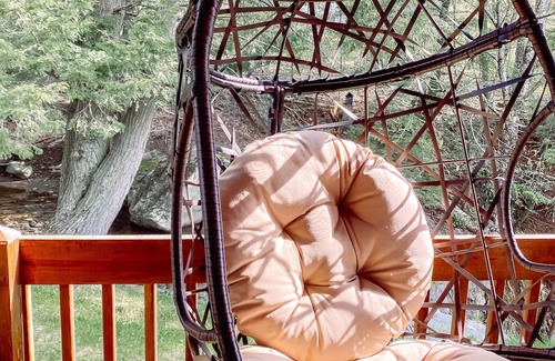 Watch sunrise over the mountains or leaf peep the gorgeous foliage or snow covered tree tops from the porch in the morning. Outdoor grill for a great summer meal. Lots of outdoor seating areas for warmer months and relaxing after a long hike: adirondacks and an egg swing under the covered porch overlooking the brook, a dining table for 8-10, a seating area looking out to the mountains, loungers by the waterfall, and a private 8-person fire pit (note: we do not supply firewood). Parents, please note there is open, un-gated access to the waterfall. The backyard is incredibly private and so peaceful. For twilight, take a two minute walk up to the Ryder Brook Golf Club for a short round or a winter walk. This house was built for entertaining, adventure, and relaxation.