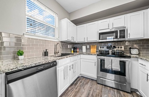 Relax in this stylish 2-bedroom apartment just 9 miles from downtown Fort Worth. Enjoy resort-style amenities, including a sparkling pool, BBQ grill, and lounge area. Stay active on the blue basketball court or in the fully equipped fitness center. The apartment features spacious interiors, modern decor, and all essentials for a comfortable stay. Ideal for families, friends, or business travelers seeking convenience and comfort. Book now for an unforgettable Fort Worthexperience!