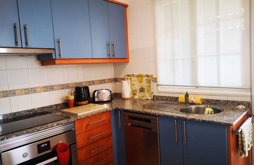 Modern property, recently refurbished. New Beds in both bedrooms, Nice outside space of 50 m² to enjoy your evenings with a new Weber Pulse 2000 BBQ. Quiet but within walking distance to restaurants, bars, and the new shopping mall (To be opened mid November 2019!) only 500 m² walk away. The nearest beach is about a 20 min walk but if you are taking a lot with you it best to go by car or grab a cab. The Beach Towels, umbrella, beach chairs and cool bag are provided. There is a small port around 1 km away. A Taxi back from the beach or one of the nearby restaurants is minimal cost. We have International TV channels, Netflix, cinema on demand and super fast Wifi. A Real home away from home ! Ideal for two couples or a family with two children. The second bedroom will be set up accordingly. (Either two separated beds, or one joined bed). There is a complete Kitchen with Dishwasher, Oven, Microwave, and a washing machine and dryer if you would like to make a home cooked meal or wash some clothes, all is provided.