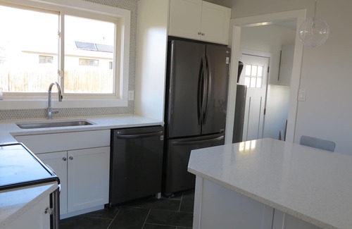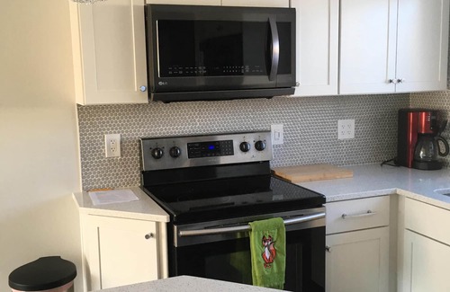 Perfect for family or a couple who wants more space. Recently remodeled 3 bedroom, 1 bath ranch home with fully equipped, open concept kitchen, sitting room and TV room/den. Get a good night's sleep in one of 3 bedrooms (1 queen master, 2 rooms with bunk-beds (double under twin). There is a full bath with a shower tub and all linens and towels provided. The den comes complete with a TV (cable included), DVD player and a selection of games and books, There is a large back yard with a gas BBQ grill and in the summer, we have table and chairs available for outdoor relaxation. If you can't leave business behind, we offer free high speed wireless internet. Walking distance to town.