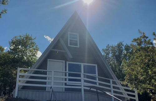 Beautiful lake views from upstairs and downstairs! Enjoy both comfort and style in this lakeside cabin! I n the living room there are two extremely comfortable leather full futons that can easily sleep up to 4 total. Two Queen beds upstairs in the loft. 50" 4k Smart TV. Which can also be used to rent movies online. Fast fiber-backed wireless internet. Heat pump air-conditioned units allow for cool Summers and cozy Winters! We have everything you need to cook as well as dining both indoors or outdoors. We provide complimentary firewood to use with the BBQ grill or campfire pit. You have access to your own personal Private Dock as well as our large Private Resort Dock!