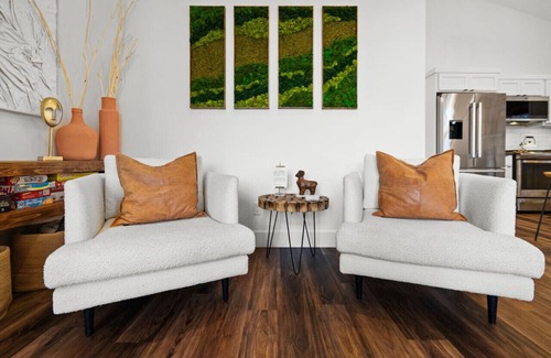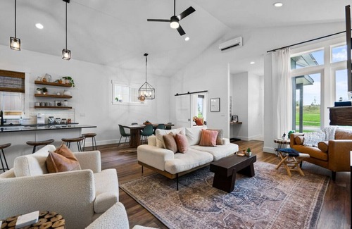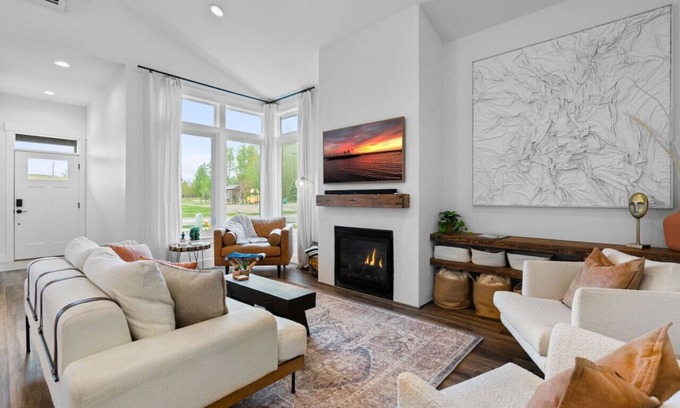 Step into a living space where modern comfort effortlessly meets entertainment essentials. This area, characterized by its open layout and minimalist design, is your go-to for both relaxation and entertainment. Equipped with a Bose Bluetooth sound system and a 55" HDTV featuring Hulu and Netflix, it promises endless hours of enjoyment. The cozy fireplace adds a touch of warmth to the sleek ambiance, creating an inviting atmosphere for unwinding at any time of the day. Whether you're catching up on your favorite series, enjoying quiet moments, or hosting lively gatherings, this living area adapts to all your moods and moments with ease.