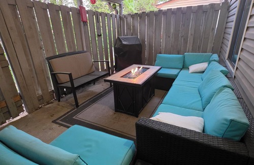Escape to a welcoming 2-bedroom condo in High Point. This cool space features 1 king bed and 1 queen bed with upscale amenities perfect for a wonderful stay. Enjoy all the conveniences like AC, heating, ceiling fans, fast WiFi, washer/dryer and a fully stocked kitchen with top notch essentials. The bathroom includes a jetted shower with an exhilarating rain shower/waterfall option, towel warmer and a hair dryer for your comfort. The living room boasts a 65" TV with surround sound and reclining sofa while the bedrooms each have 55" TV's. Step out to the rear patio for some R&R and cozy up to the Fire Table or do a little grilling. Want to go for a swim then just walk across the parking lot to the clubhouse! Perfect for HPU or Furn Mkt guests or a romantic getaway.