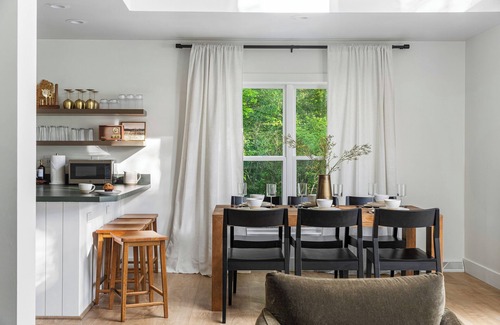 We have a large, dreamy loft space where 2 queen beds overlook the river with beautiful, large windows. It's a quiet, elevated retreat perfect for a restful night's sleep.