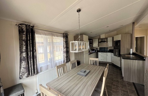 A stunning modern lodge with 3 bedrooms with 1x queen size bed with en-suite bathroom, and 4x full size single beds and a large open plan family area.