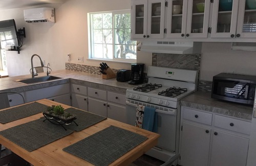 A true home-away from home. Recently upgraded with a modern touch, this cabin is simple, yet offers plenty of new amenities to ensure the most enjoyable and comfortable stay. Amenities include: full kitchen, AC/heat, wood burning stove (if you really want to turn up the heat!), BBQ grill, WiFi, full motion swivel smart TV for streaming movies or listening to music, washer & dryer, rain shower head and much more! The bedroom is spacious with ample closet space and a balcony for maximum relaxation. Feeling creative? Get inspired sitting at the writer's nook overlooking the seasonal creek and tree swing through the large bay window. Ever wanted your own tree house? Have fun climbing or hanging around the property's tree house during the day or relish in evening stargazing under the planetarium style night sky. The home is a hop, skip and jump away (1 mile) to access Lake Isabella, about 8 minutes to Kernville and the Kern River, 15 minutes to Alta Sierra and 60 minutes to the "Trail of 100 Giants".