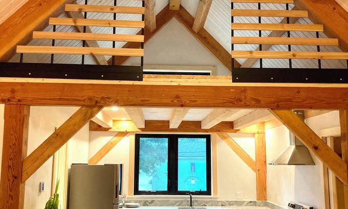 Incredible seacoast location a block off the water--in one of the only neighborhoods within easy walking distance of both Market Square, Portsmouth and Kittery. This stylish studio loft is in a newly constructed timber frame structure that boasts high ceilings, quartz counters, and a private deck facing a wooded area. Ideal for couples or single travelers. Open concept living with a comfortable queen bed, perfect for a good night's sleep. Enjoy the convenience of off street parking, on site washer and dryer and the comfort of new ac/heat and a smart tv to stream your favorite shows. Crate and Barrel furnishings and tasteful clutter free decor. Safe, tree lined street in upscale neighborhood close to top tier restaurants, cafes and shops...and fresh lobster of course. Excellent beaches are a short drive away. Summer evenings can be spent strolling through the historic beauty of Portsmouth, attending free concerts at Prescott Park, or a show at local favorites The Music Hall or Jimmy's Jazz Club. Host is from the area and can make recommendations that ensure you see the best of what the Seacoast has to offer, including some lesser known gems.