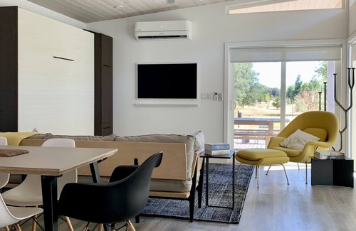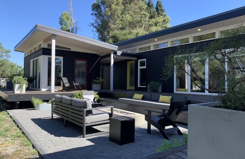 Brand new beautiful, modern getaway right on Dry Creek! This secluded, peaceful property has a full kitchen, huge deck, two king bedrooms with in-suite bathrooms and a king Murphy bed and full bath in the living space. The popular Healdsburg town square, with all its shops and restaurants, is just a 15-minute walk away.
