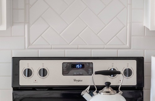 The open-concept living, kitchen, and dining area creates the perfect space to gather. The fully stocked kitchen comes equipped with a refrigerator, dishwasher, microwave, oven, stove, kettle, drip coffee maker, toaster, and blender—offering all the modern conveniences you need while away. For entertainment, enjoy high-speed Wi-Fi and a 50" smart HDTV with Roku and Netflix.