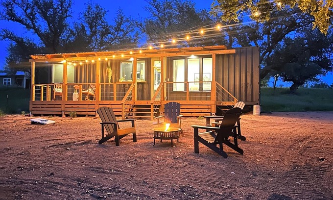 Welcome to the Cozy Cacti Container, your unique escape nestled in the heart of Texas Hill Country. Our 1-bedroom, 1-bath container house, complete with a full kitchen, offers breathtaking views of the Packsaddle Mountains and direct access to the tranquil Llano River. Spend your days fishing, tubing, or hiking, and your evenings around your personal firepit under the stars. This modern-rustic, newly constructed retreat offers a glamping experience like no other, promising a memorable getaway. *Message me for details about our 4th night free promotion*