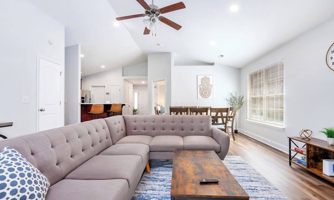 This spacious 4-bed, 2-bath home features updated finishes, a fully equipped kitchen, spacious living room with Netflix, and outdoor patio with BBQ grill. Explore the charm of Huntsville while enjoying the comfort and convenience of single-story living.
