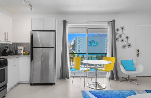 The Float is a Mid-Century Modern building located in the Deepwell Section of South Palm Springs, where convenience meets style!