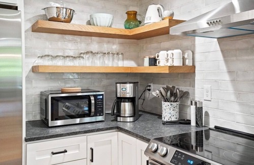 Modern Amenities: Enjoy all the conveniences of home with fully equipped kitchens, high-end furnishings, flat screen TVs, and recreational options like a shuffle-board table and tournament size dart board to keep guests entertained.