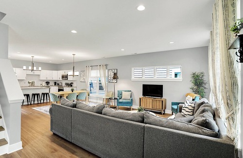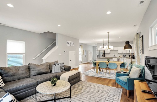 Great room ties together entire first floor, offering pull-out sofa, Roku TV, reading lamp & extra chairs if needed. Control your comfort with Nest smart thermostat & Simplisafe home security when exploring the city.