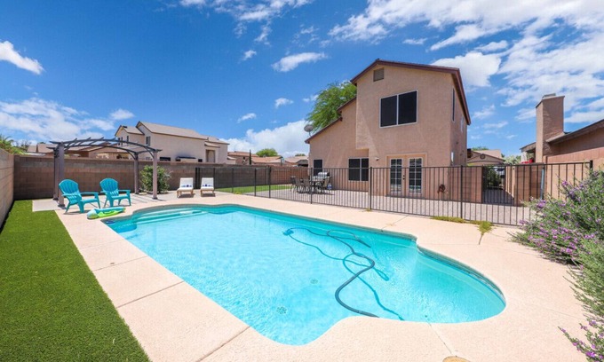 Modern, Spacious Oasis w/Pool! is located in Rita Ranch. Modern, Spacious Oasis w/Pool! provides accommodation, featuring Barbecue/Outdoor Cooking, Child Friendly, Parking, among other amenities. This House features Barbecue/Outdoor Cooking, Child Friendly, Parking, to make your stay a comfortable one.