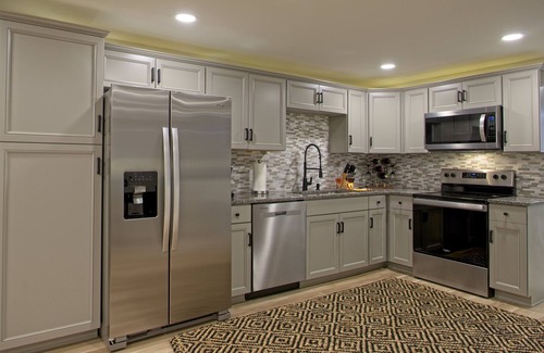 The kitchen is fully furnished with modern stainless steel cooking appliances, making it suitable for preparing any meal, from simple breakfasts or snacks to a three-course gourmet dinner. Spacious granite countertops offer ample space for culinary creativity.