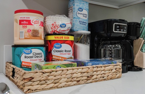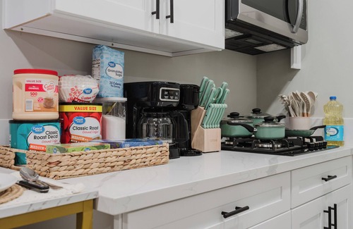 • Fully Stocked Kitchen w Coffee, Cooking Supplies