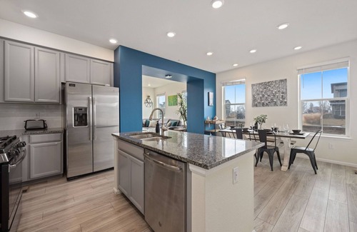 This stunning mountain-inspired home is the perfect Colorado getaway! Interior highlights include four spacious bedrooms with plush mattresses, a robust work station with a large monitor, and modern furnishings with custom designer touches. The cozy reading nook on the second level is a great place to relax and read a book! You will love the quiet, urban neighborhood while still being so close to all the action. Relax at the brand new community pool and come stay a while!