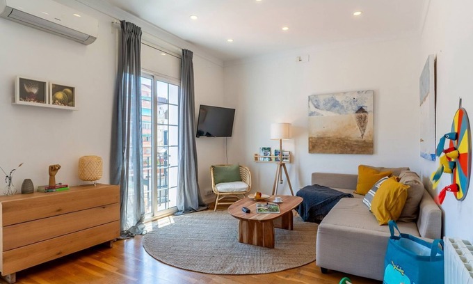 Beautiful apartment, just a few steps away from Plaza Espanya and Fira Montjuic. Surrounded by restaurants/cafes, supermarkets and even a shopping center! Easy access to any part of the city with metro, train or bus.THE SPACE:This 85 m2 modern apartment is located a few steps from the beautiful Plaza Espanya. Great location near Montjuic! Feel the essence of the heart of Barcelona, the architecture, culture and gastronomy. The apartment is quiet, bright, modern and fully furnished. It has all the amenities you might need for a comfortable stay.BEDROOMS & BATHROOMS:The apartment has a capacity for up to 6 people distributed in 3 bedrooms: