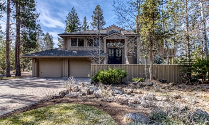 Welcome to this amazing modern split level Sunriver home with new A/C. When you walk in you'll feel like you’re in a tree house with almost 180 degrees of floor to ceiling windows surrounded by Pine and Aspen trees and a partial Mt Bachelor view.