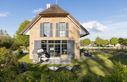 Modern thatched house "Haus Meeresleuchten" with fireplace and sauna near the beach | House in Hohenkirchen
