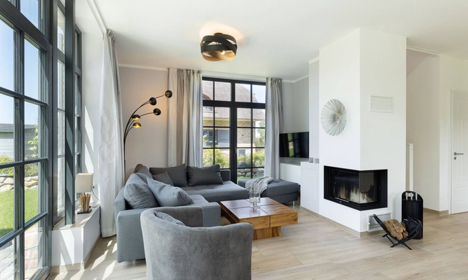 Modern thatched roof house "Haus Strandperle" with fireplace and sauna near the beach is located in Hohenkirchen. Modern thatched roof house "Haus Strandperle" with fireplace and sauna near the beach provides accommodation, featuring Pet Friendly, Balcony/Terrace, Oceanfront, among other amenities. This House features Pet Friendly, Balcony/Terrace, Oceanfront, to make your stay a comfortable one.