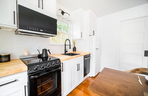 Discover your cozy retreat just moments from downtown! This charming tiny home offers maximum functionality and comfort with a luxurious queen-sized bed, organized drawers, and a fully-equipped kitchen. The bathroom includes a sleek shower and a washer/dryer combo for convenient packing. Relax on the couch with a smart TV and high-speed Wi-Fi. Georgia Southern, restaurants, and coffee shops are a short drive away. Book now for the perfect blend of comfort and convenience in your urban escape!