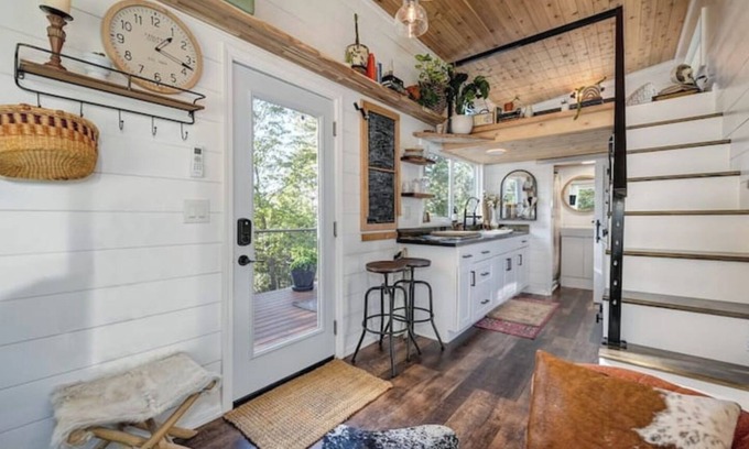 The Tiny House feels like a treehouse in the country, secluded from the main house on the property. Featuring a fresh updated retro vibe, you will enjoy a cozy space while watching nature stroll by.