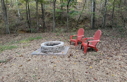 You'll love this unique and romantic escape. Completely private get-away nestled in the woods yet only 3 miles to town. Enjoy fiber wifi service, a smart tv set for you to enjoy your own Netflix, Apple TV or others. Even the blinds have a remote so that you can lay in bed, open the blinds and experience nature. Maybe deers running by or hear the owls that are your only neighbors. The huge tiled shower also boosts a bluetooth speaker so that you can enjoy your favorite playlist. Just down the hill next to the seasonal creek you will find the fire pit(firewood provided).