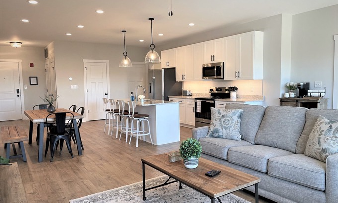 Welcome to our cozy modern oasis in Forest, VA! This bright, newer-build condo sleeps up to 6 and offers an open layout in a friendly neighborhood. Close to dining, shopping, universities, hospitals, and hiking—perfect for solo travelers, couples, families, or groups. Great for short, mid, or long stays! Enjoy free parking, Wi-Fi, self-check-in, keyless entry, video doorbell, and a secured, well-lit building with an elevator. Perfect for adventurers and those seeking a peaceful escape.