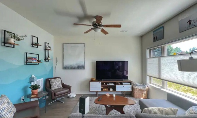 Welcome to our Mountain Town Retreat! Stylishly furnished with new appliances, air conditioning, comfortable living spaces, and mountain views. Enjoy the outdoor patio with grill. Queen beds, TVs, walk-in closet, and sitting areas in the bedroom. Convenient 2 bedroom and 2.5 baths.