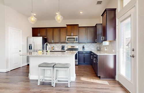Life is good in this magnificently modern townhome tucked into San Antonio’s Northside. With its well-appointed kitchen, fully fenced backyard, peaceful patio, and balcony, this home is perfect for a work-a-way or long-term escape in case you are testing out San Antonio to be your new home. The property is close to multiple parks to play in the sun, a golf club, and local eateries to indulge in San Antonio’s food scene.
