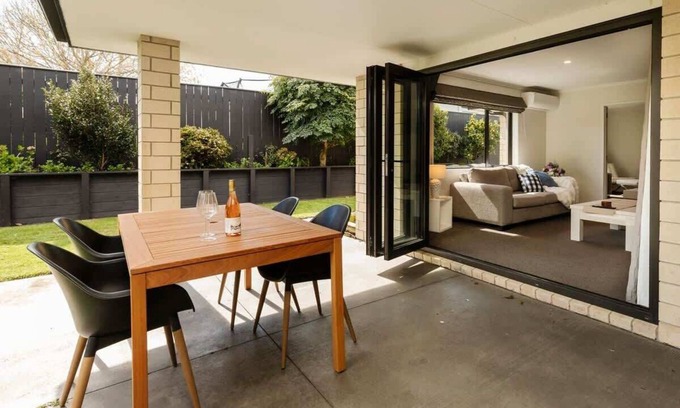 Welcome to Modern Townhouse in Strandon, your perfect family getaway. - Spacious single-story home with three double bedrooms - Large social kitchen with island and walk-in scullery - Indoor-outdoor flow to covered entertaining area - Heat pump, underfloor heating, double glazing, solar panels - Private fenced garden - Walking distance to Fitzroy Village cafes and beach