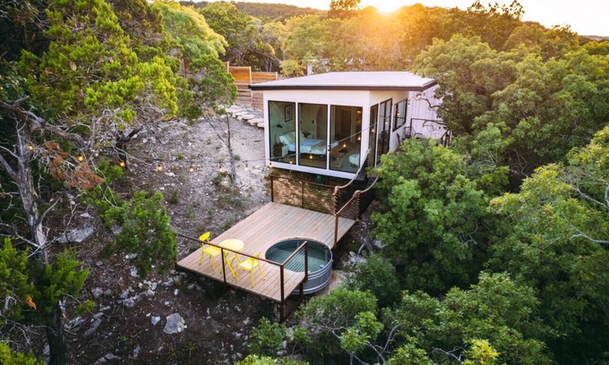 Modern Treetop Villa with Dip Pool & Rope Bridge | House in Marble Falls