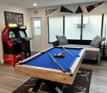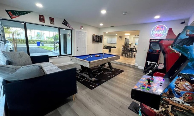 Modern Tropical Oasis with Arcade, HotTub & MiniGolf is a recently renovated vacation home in Hollywood where guests can make the most of the garden and tennis court. The air-conditioned accommodation is 6.9 miles from Seminole Hard Rock Hotel & Casino. The vacation home also provides free Wifi, free private parking, and facilities for disabled guests. Providing a patio and garden views, the spacious vacation home includes 3 bedrooms, a living room, flat-screen TV, an equipped kitchen, and 2 bathrooms with a walk-in shower and a hot tub. Guests can enjoy a meal on an outdoor dining area while overlooking the quiet street views. The vacation home offers bed linen, towels, and laundry service. There is an on-site coffee shop, and during warmer months you can make use of the barbecue facilities. You can play billiards, darts and squash at the vacation home, and the area is popular for cycling and fishing. An indoor play area is also available at Modern Tropical Oasis with Arcade, HotTub & MiniGolf, while guests can also relax on the sun terrace. Hard Rock Stadium is 7.9 miles from the accommodation, while Broward Convention Center is 10 miles away. Fort Lauderdale-Hollywood International Airport is 5 miles from the property.