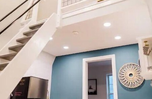 This cabin is a chic space with a fully equipped kitchen, spacious bathroom, living room, and upstairs bedroom loft. The loft contains an open bedroom with a queen size bed and dresser. To access the loft, there is a steep staircase. In addition to the loft bedroom, we offer a queen pull out sofa bed located on the first level of the cabin.