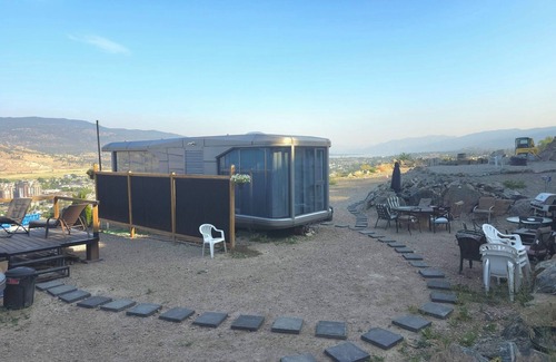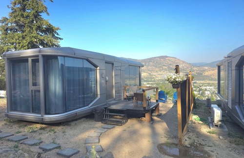 Amazing super contemporary one bedroom units over Skaha lake with all the amenities located on a working Vineyard. Breathtaking views of both lakes. Super close to Skaha beach and town, completely private paradise. Lots of history on this land, modern suites with projector Tv ,Wi-Fi, large bathroom, shower, kitchenette, front patio, side patio private yard, common areas, BBQ , fire pit, walking distance to wineries next door or a 10 min walk down the road to another winery, amazing hosts. NO PETS or Children sorry active farm.