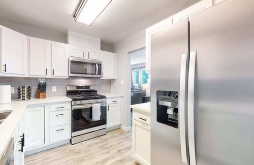 ✔ Modern Kitchen: Fully equipped with stainless appliances, cookware, and coffee maker.