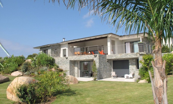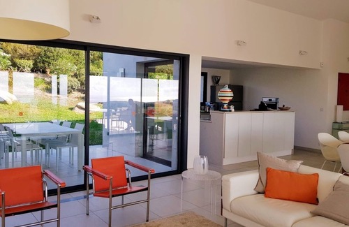 Beautiful modern villa located 20 minutes from Figari airport built 5 years ago with a magnificent view in a quiet area of 7 houses on the road to Sperone 5 km from Bonifacio. The beach and the Golf of Sperone are 10 mn on foot.