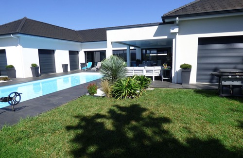 Modern villa with heated pool, sleeps 6 to 8, Pyrenees view | House in Poey-De-Lescar